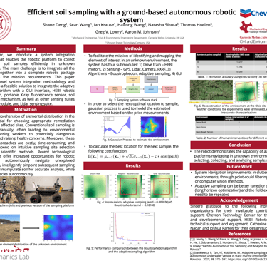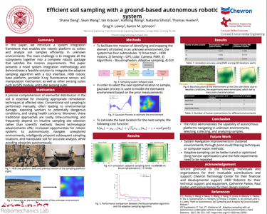 The algorithm is developed to be a more efficient way of taking samples in an unknown environment. The algorithm is implemented in Python with scikit-learn machine learning library. The performance of the adaptive sampling algorithm is compared with the Boustrophedon algorithm and the performance graphs are generated with MATLAB python library. To ensure the fairness of comparison, both adaptive and Boustrophedon algorithms use the same underlying Gaussian Process settings. To compare the accuracy of the reconstruction, the Wasserstein distance is used. The Wasserstein distance is also known as Earth Mover's Distance (EMD)